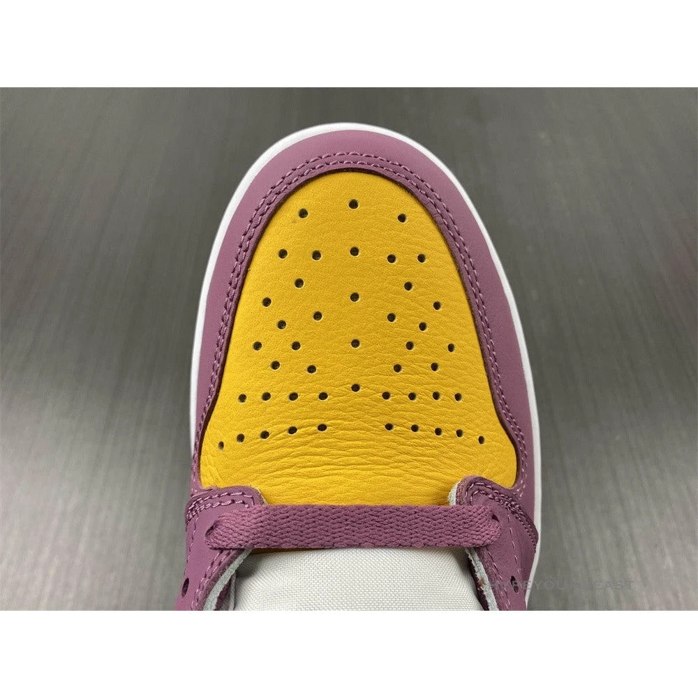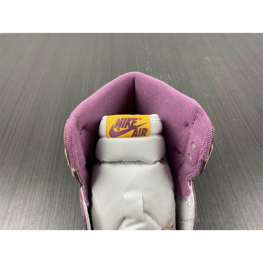 Air Jordan 1 High OG ‘Brotherhood’ features the brand’s collaboration with three-time NBA champion Dwyane Wade. These sneakers honor Wade’s Brotherhood mantra as it celebrates unity, teamwork, and brotherhood. Brotherhood Jordan 1 carries white leather upper bases with mauve and bright yellow accents. It even carries mauve Nike Swoosh and Jordan Wings logo. These kicks are completed with white midsoles and yellow rubber outsoles.