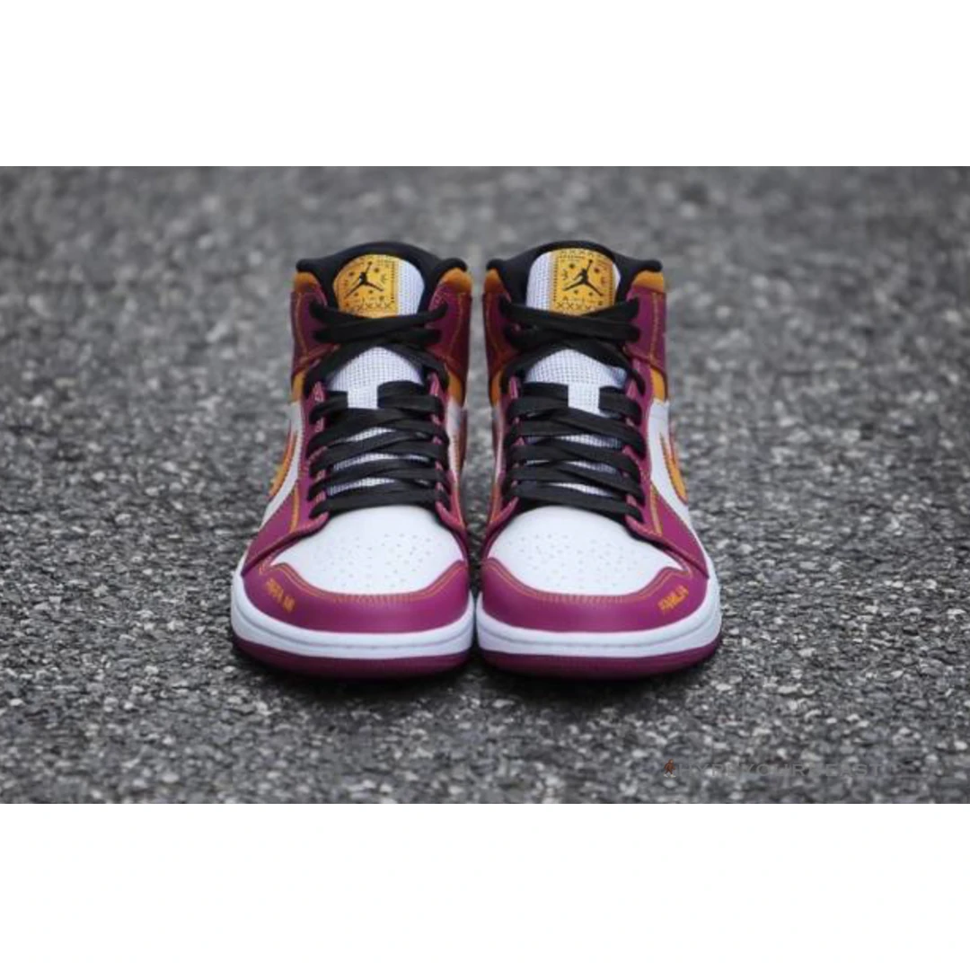 An eye-catching purple and University gold sneakers are made through Air Jordan 1 Mid Dia de Los Muertos or Air Jordan 1 Mid Day of the Dead. This pair is inspired by the famous Mexican holiday that honors the spirit of the dead. It is constructed from a clean white leather upper with purple accents on the forefoot, forefoot panel, eyelets, heels, and collars. The University Gold accenting reveals the Nike Swoosh, Jumpman logo on the tongue, and word “Familia” on the forefoot. You can now get a pair of these meaningful sneakers and enjoy its high-quality style and performance.