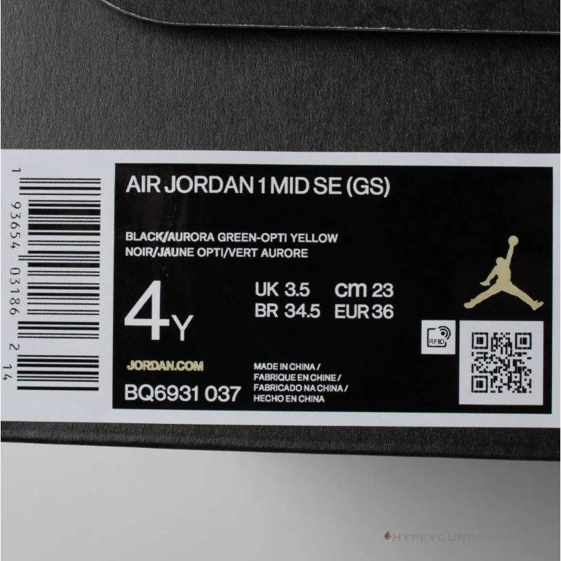 Air Jordan 1 Mid GS Aurora Green Optic-Yellow is well-built from genuine leather, giving you durability and the classic AJ1 touch. Apart from that, air-sole cushioning is soft and lightweight that will provide you all-day comfort. You will never regret copping these pairs of sneakers because it’s the combination of high-quality construction and sleek design.