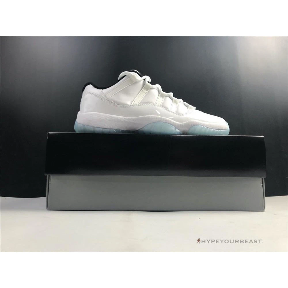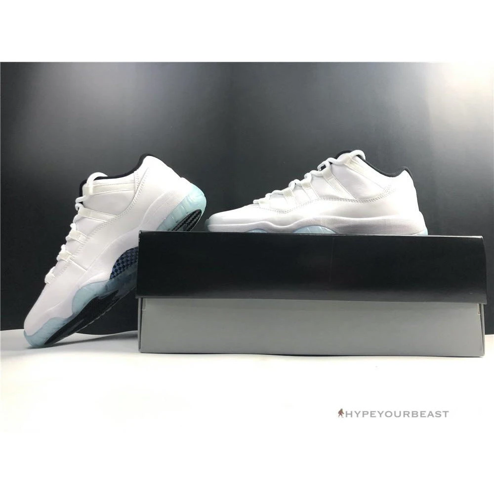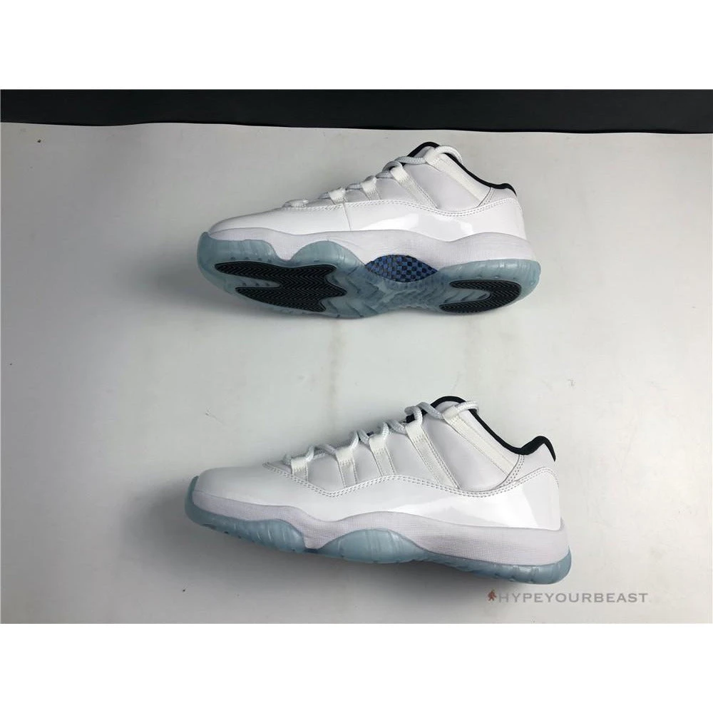 All white sneaker with translucent effect is the main feature of Air Jordan 11 ‘Legend Blue’ Low. These sneakers highlight white leather upper construction. It also uses tonal patent leather along its mudguard and tongue made from a ballistic mesh finish. Air Jordan 11 Low Retro ‘Legend Blue’ promotes an all-white upper but it also flaunts the translucent Legend Blue outsoles making it more extraordinary. The iconic Jumpman logos also appear on the tongue tab and outsoles.