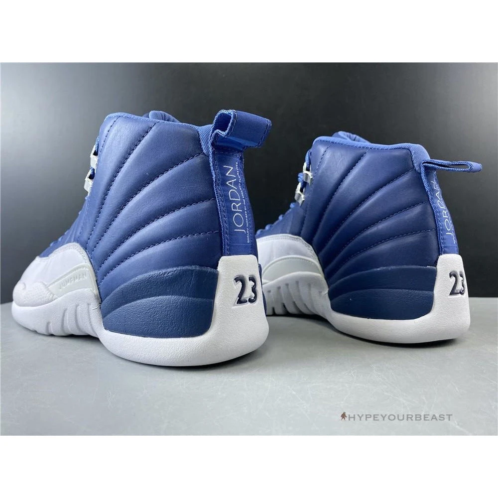 Air Jordan 12 Retro Indigo caters two-tone shades of white and indigo hues. Its elegance and stunning Indigo colorway brings out smooth leather white mudguard and stitched leather accents in indigo touch. Looking on its heels are also appealing due to the lighter blue tabs with Jumpman logo and “23” at the bottom. Wearing this pair of Air Jordan 12 Retro Indigo entails fascinating effects of two-tone colors on your feet.