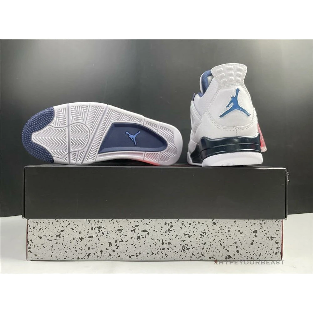 This pair of Air Jordan 4 ‘Columbia’ captures the interests of the public with its classic cement accents built to complement any retro style. The white color blocking palette is made with quality leather material. Additionally, leather wings, leather heel tabs, and a perforated leather midfoot embellished in these aesthetically fashionable kicks.