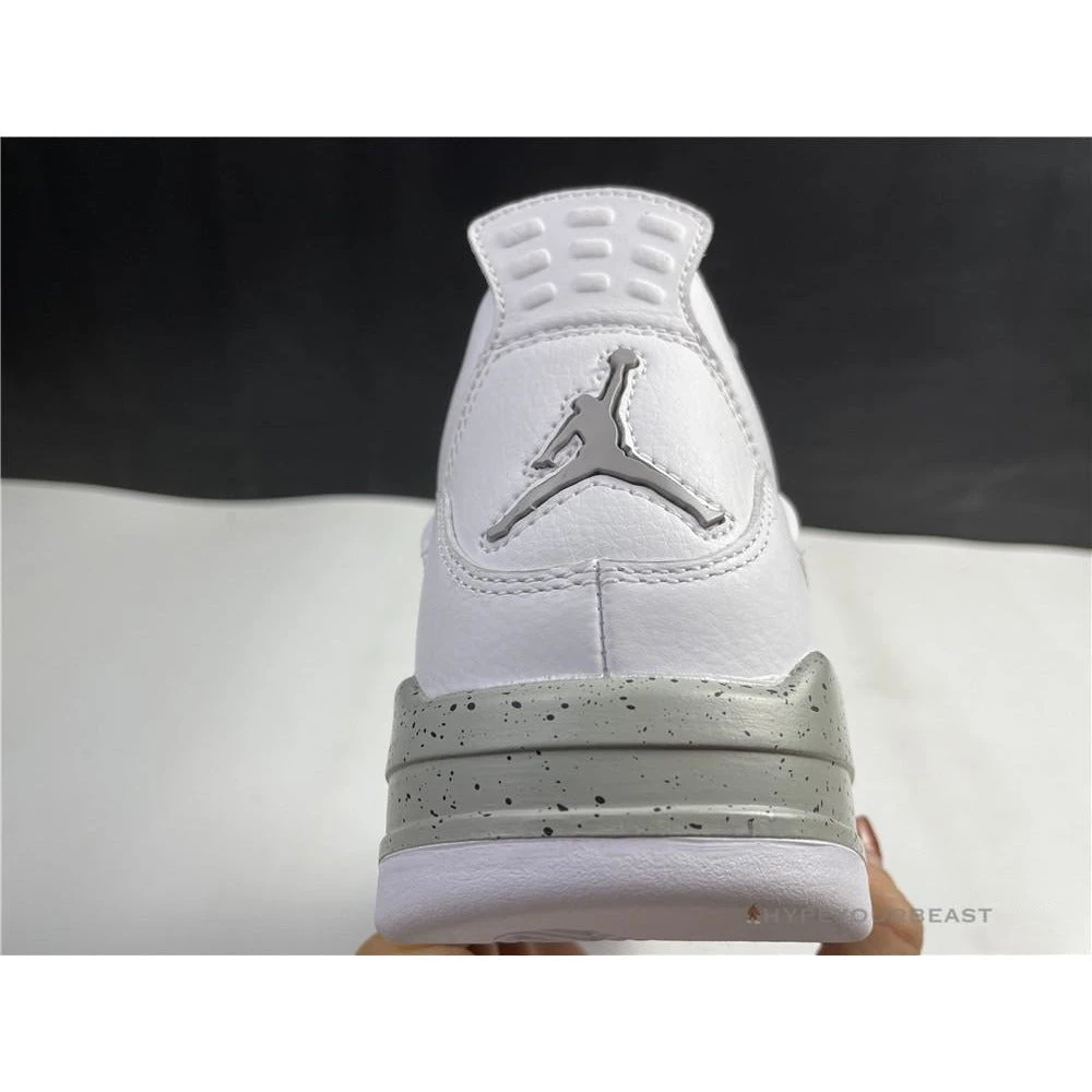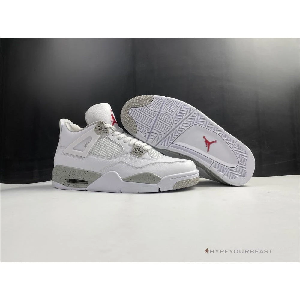 Air Jordan 4 “White Oreo” flaunts a white colorway with tech grey accents. This footwear owns white leather upper base material. It also carries suede material in a white accent. Besides that, the TPU cage is also present in a white hue, making it look cleaner and minimalist. However, Air Jordan 4 “White Oreo” also includes tech grey touch on the eyelets, midsoles, and forefoot sole. Besides the style, the sneakers use visible air sole technology ensuring better quality and shoe performance.