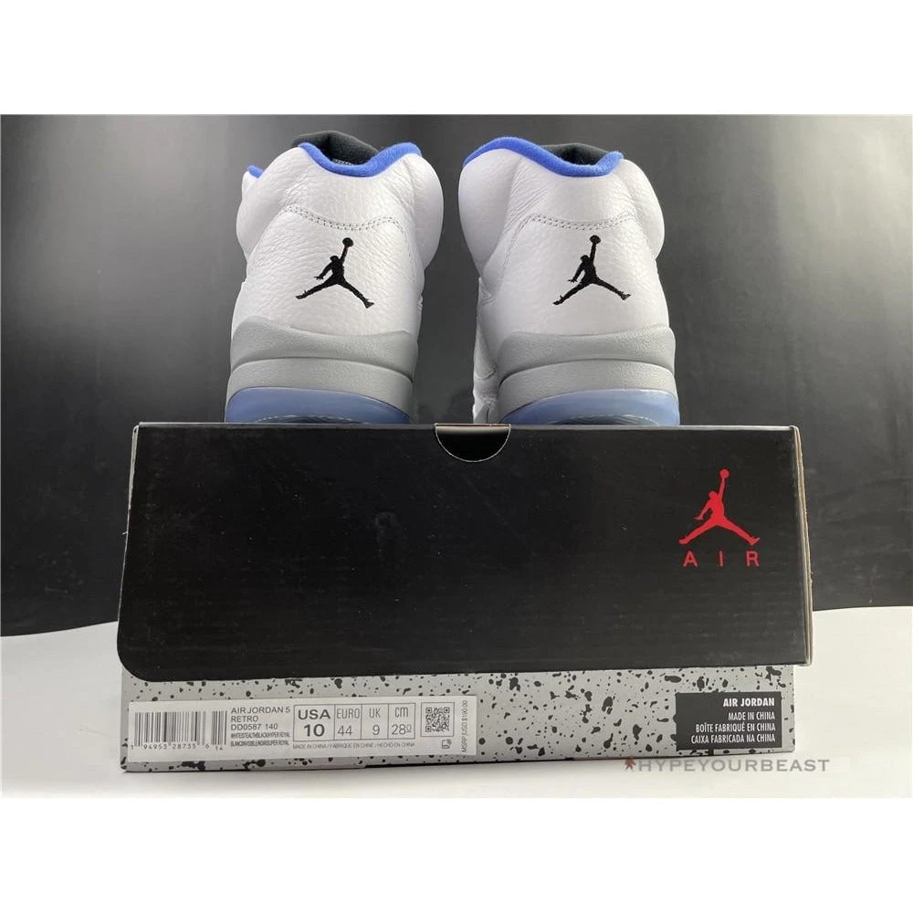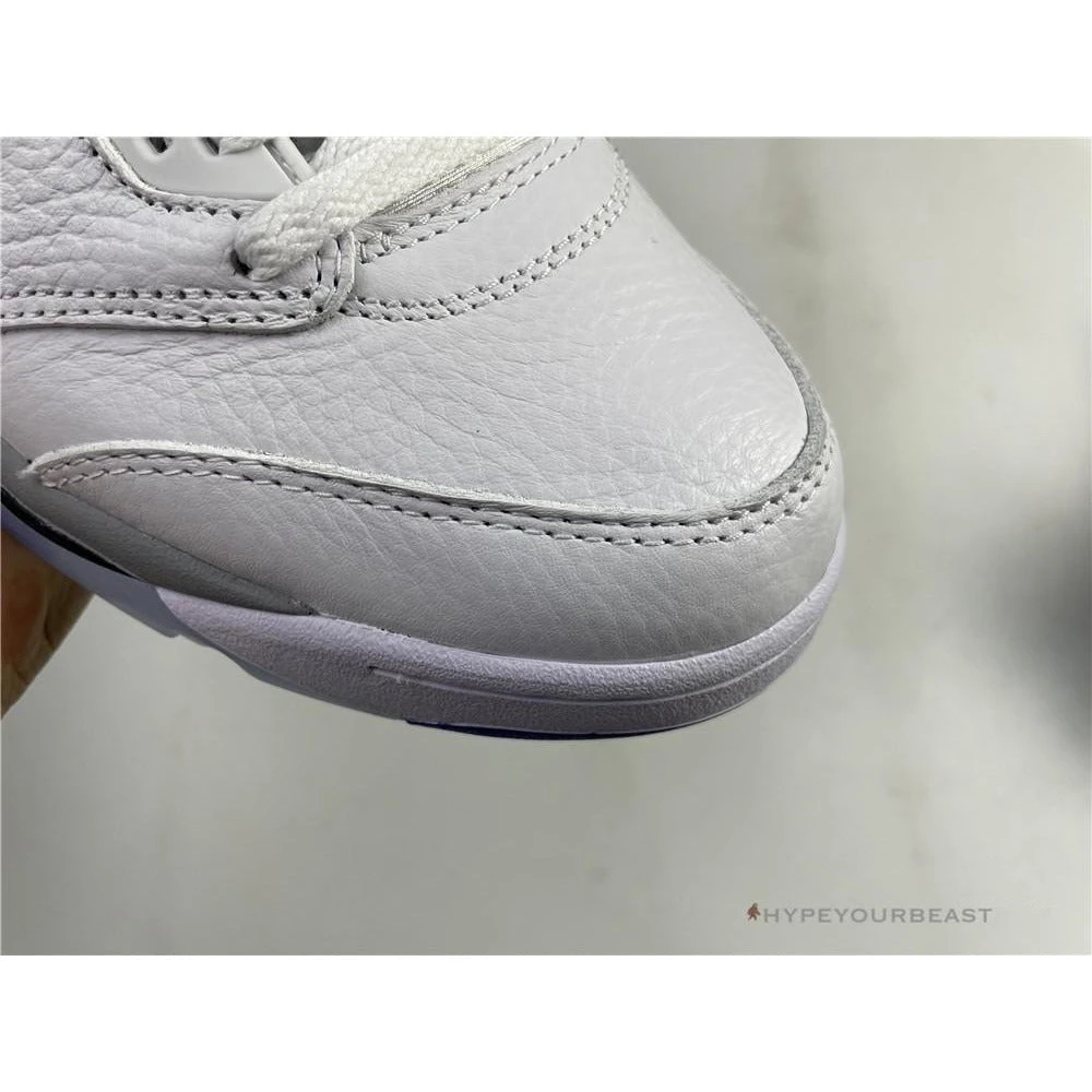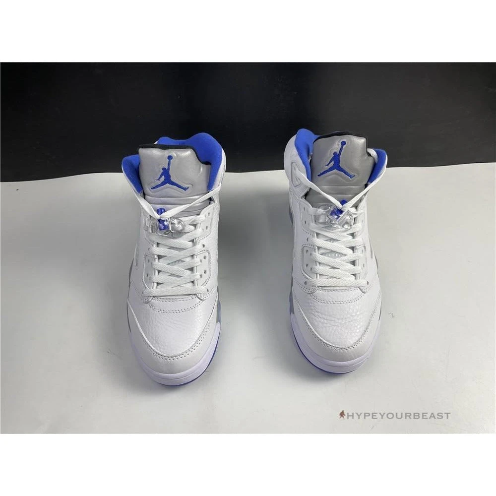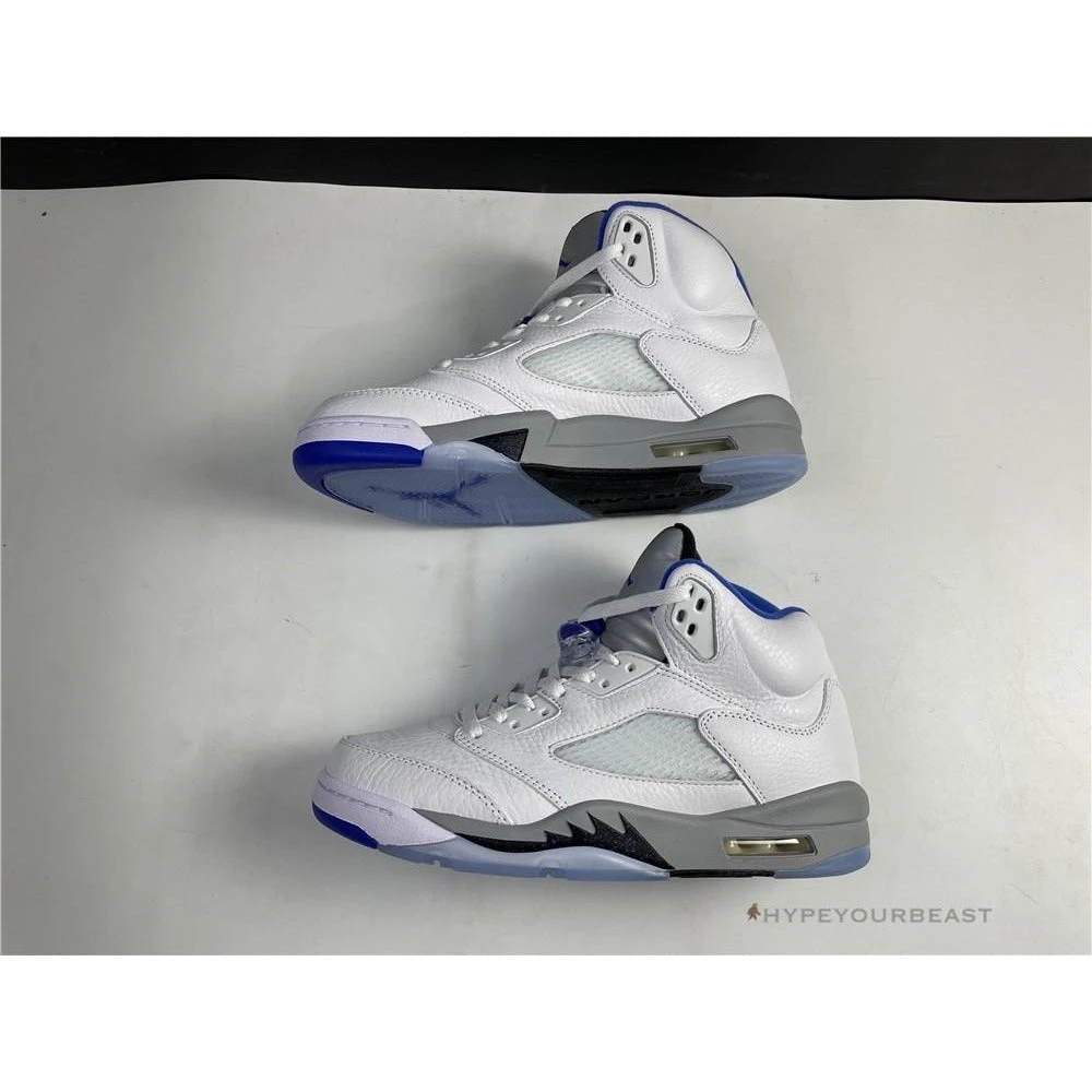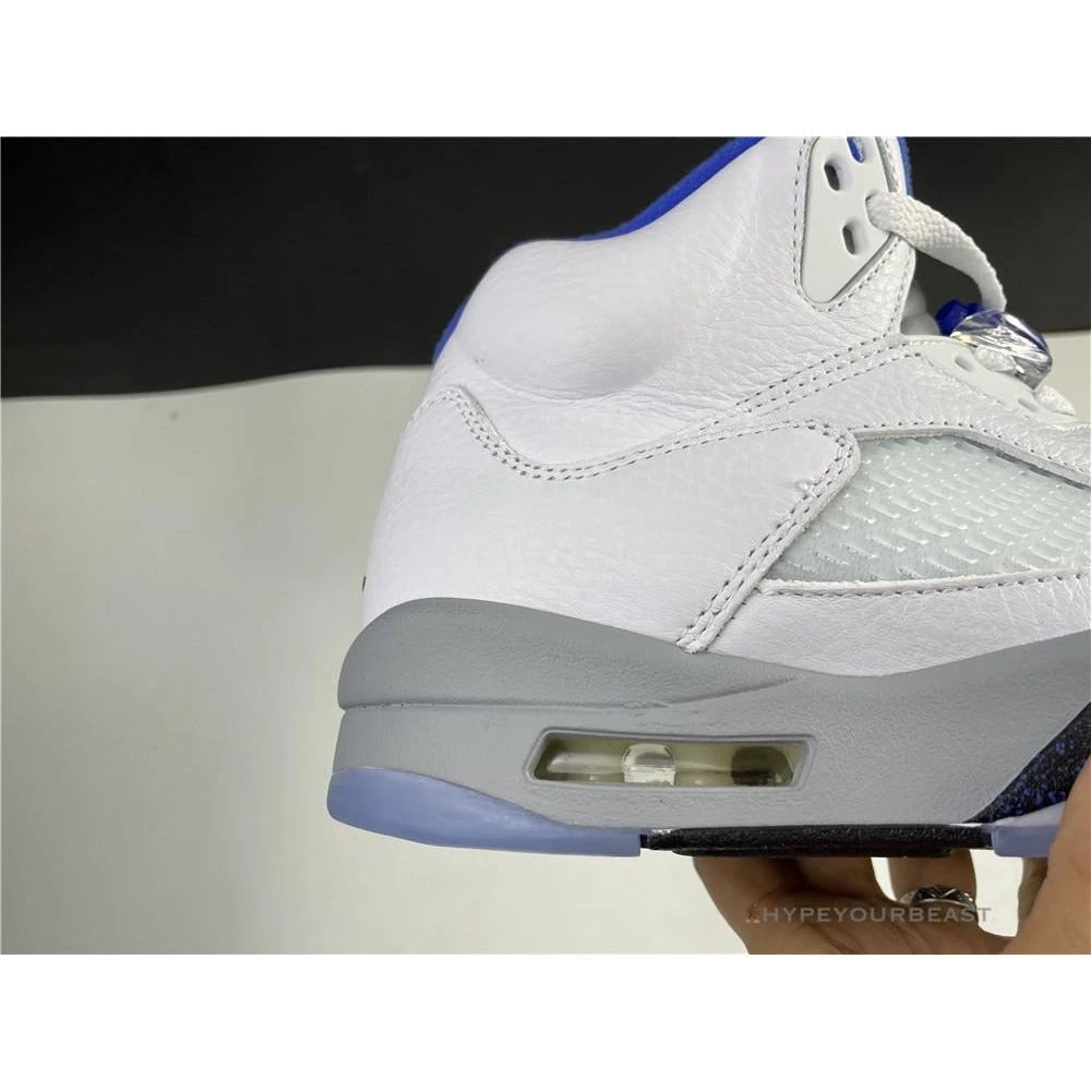 White sneakers with powder blue accents are the primary highlights of Air Jordan 5 Retro Stealth 2. This footwear uses white leather upper bases on its appearance. It also uses an impressive shape of collars with huge tongue tabs. These mid-top kicks also use pale grey touch on the tongue tab and midsoles with visible Air sole technology. Besides that, these sneakers also bring you the iconic Air Jordan 5 shark tooth details. To complete the overall look, Air Jordan 5 Retro Stealth 2 presents the translucent outsoles with a powder blue Jumpman.
