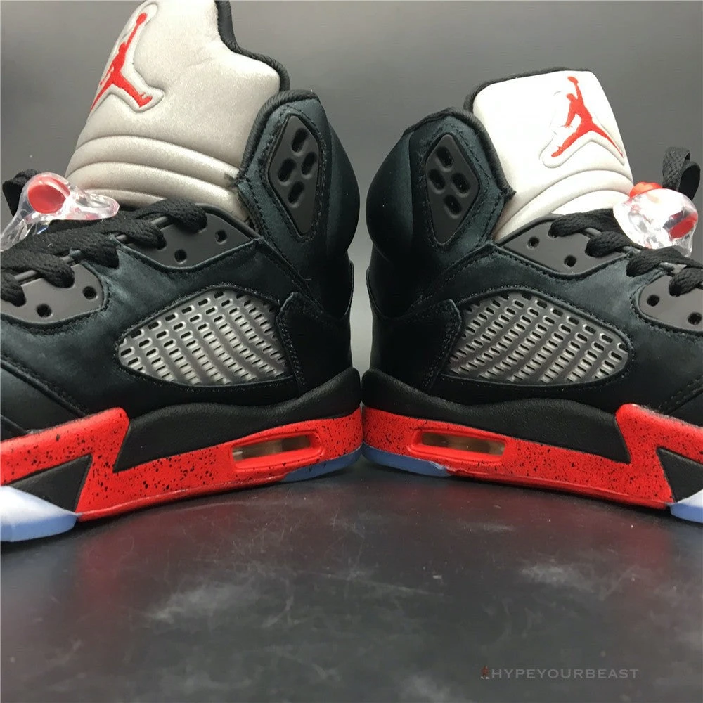 The Chicago Bulls colorway is innovated through the Air Jordan 5 Satin Bred version. Instead of using a leather upper base, Air Jordan 5 Retro Satin Bred showcases the satin construction. This all-black upper has other color combinations on the tan-colored tongue tab with the red Jumpman logo. Even its soles are kicking through the red midsoles with visible Air sole technology. The shark-tooth effects on the soles are in black too. Lastly, the sneakers include white and clear outsoles for a more unique style. Grab these sneakers and nail their impressive color, comfort, and performance.