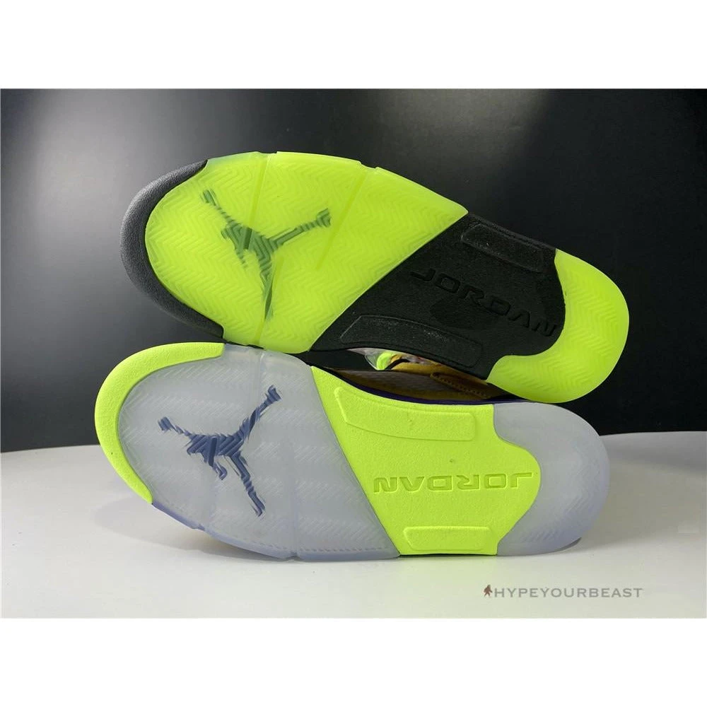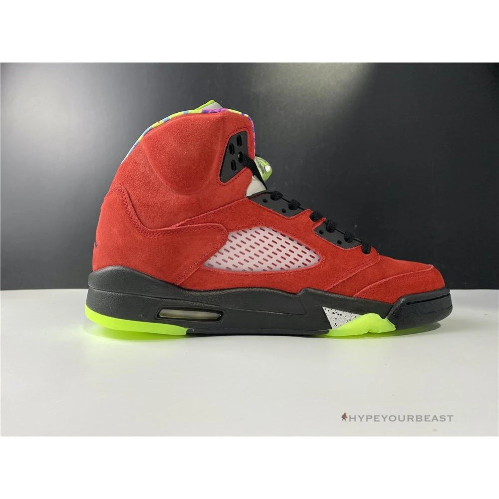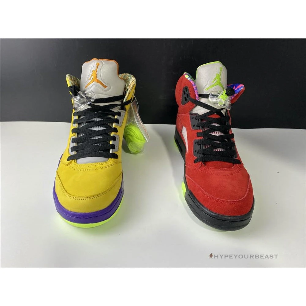 Air Jordan 5 Retro SE ‘What The’ gains lots of attention due to its yellow-colored right shoe and red color-left shoe. These sneakers bring a bold and brave combination of these two colors as it also joins the 30 years celebration of the brand. Air Jordan released Air Jordan 5 ‘What The’ with great construction of suede upper with additional accenting of the brand label. The yellow right shoe has Tokyo colorways, while the red left shoe has the Raging Bull shades. Be one of the wearers of these eye-catching sneakers now!