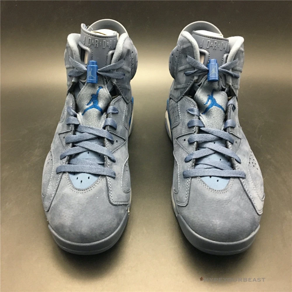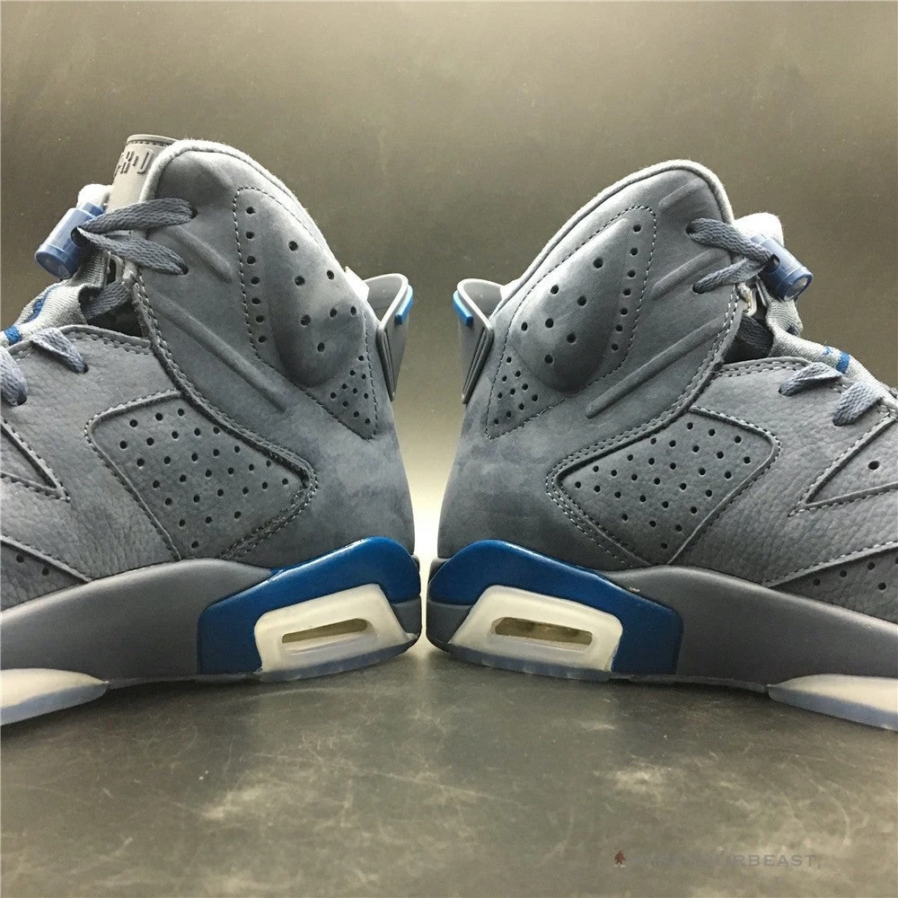 Air Jordan 6 Retro ‘Diffused Blue’ Mens pays tribute to Jimmy Butler as one of the Jordan Brand players. These sneakers feature the unique and dashing diffused blue touch along with leather and nubuck construction. Nike Air Jordan 6 Retro ‘Diffused Blue’ also highlights the signature lace lock and impressive heel tab style. It also carries perforated inlays and embroidered Jumpman icons on the heel. The sneakers’ look is finished with visible Air sole technology and translucent rubber outsoles.
