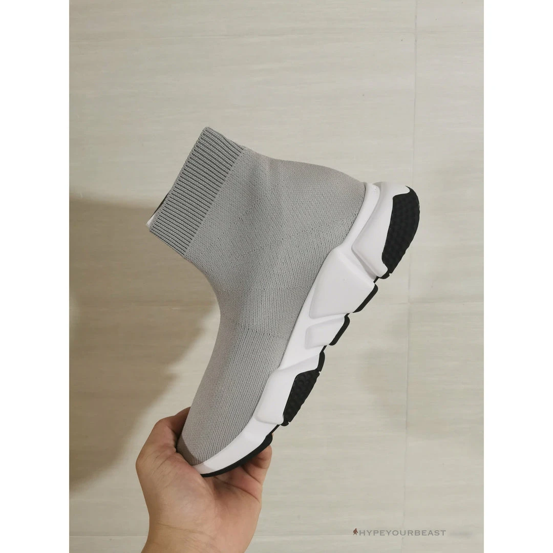 Balenciaga Graffiti Sneakers Grey brings out fascinating colors and styles. It carries grey touch on its sock-like structure. These kicks showcase ankle-length and round-toe construction. Moreover, Balenciaga Sock Sneakers Grey brings out chunky rubber soles with white midsole and black rubber outsoles. The sneakers are completed with the incredible Balenciaga graffiti logo on its thick white midsoles.