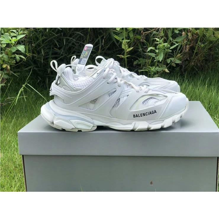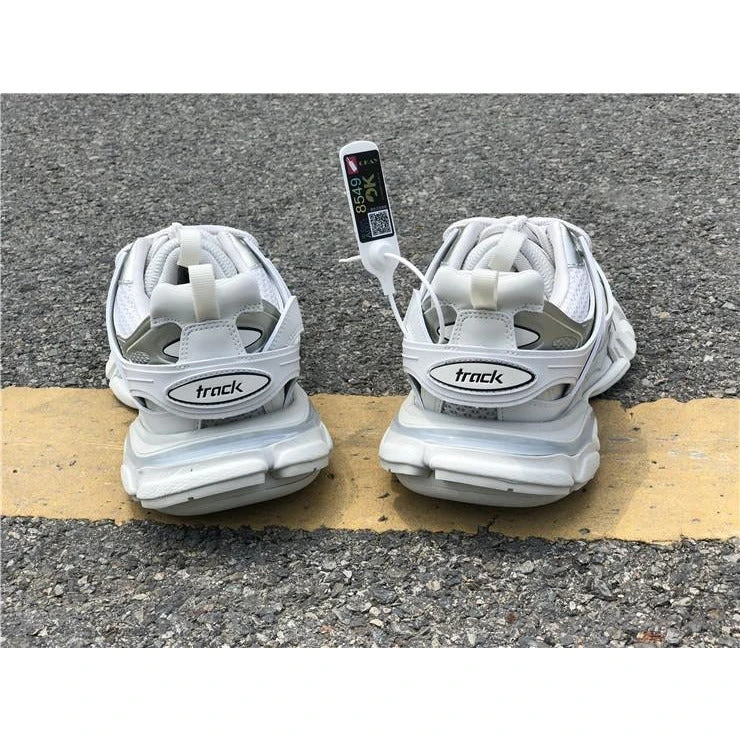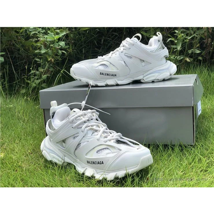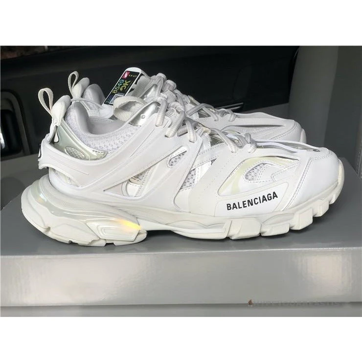 All-white shoes lovers will be impressive with the Balenciaga Track Sneakers White due to its clean and neat styling and layering of nonleather materials. The installation of mesh and nylon provided a new and unique construction of the sneakers. Its unusual composition also includes a double lacing system and pull-on tab features on the tongue and heels. The only thing highlighted in the pair is the Balenciaga imprint on the side foot. But then, Balenciaga Track Sneakers White also owns an embossed logo on the tongue and front of the outsole to further introduce the brand.