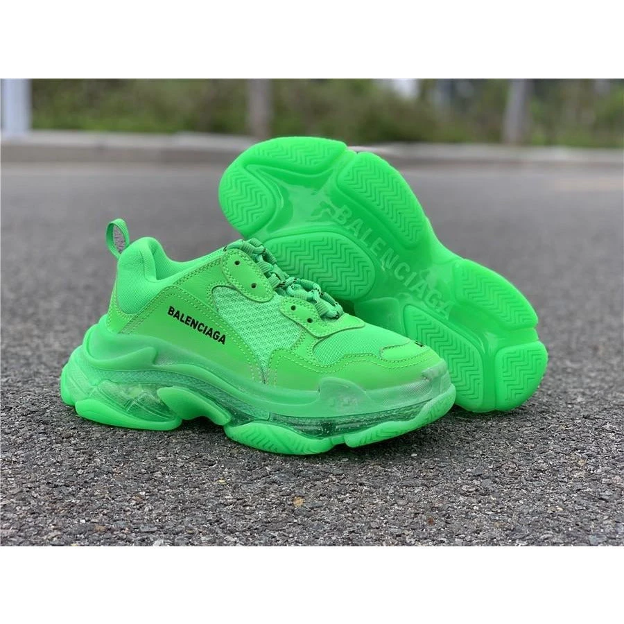 BCG Triple S Neon Green will provide you vibrant neon green style to complete your streetwear outfit. It will also keep a striking effect on peers as you flaunt its neon colorway. Pair this footwear with any dark color or monochrome clothes on your wardrobe. Grab these kicks to experience their thrilling vibe on your feet.