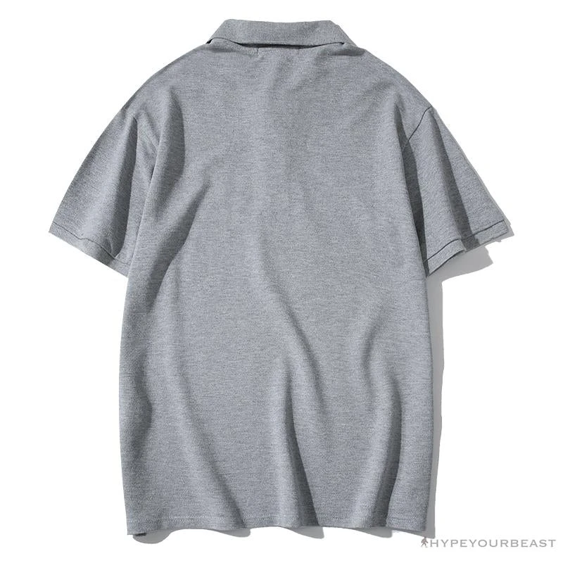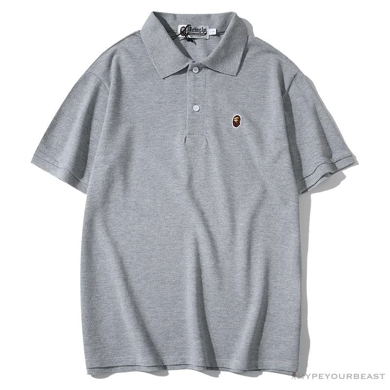 Hypeyourbeast BAPE Solid Color Versatile Embroidered Ape Head Small Badge Polo Shirt ‘GREY’ Clothes