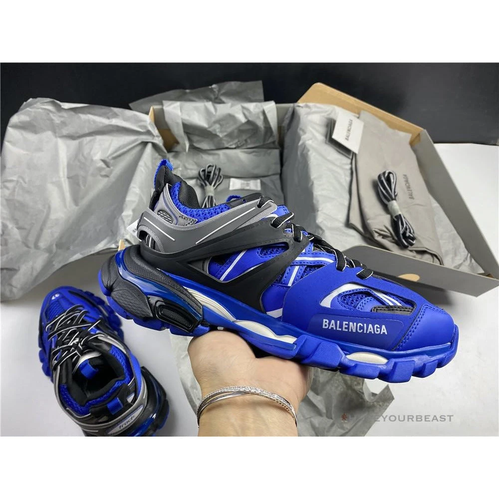 Two-tone black and blue features are highlighted through Balenciaga Track Sneakers 3.0 Black/Blue. These sneakers showcase nonleather materials like mesh and nylon channeling blue bases. Besides the royal blue tone, Balenciaga Track Sneakers 3.0 Black/Blue also includes blue and grey overlays on the laces, heels, and midsoles. You can enjoy the sneaker’s excellent performance while appreciating its cool look and style.