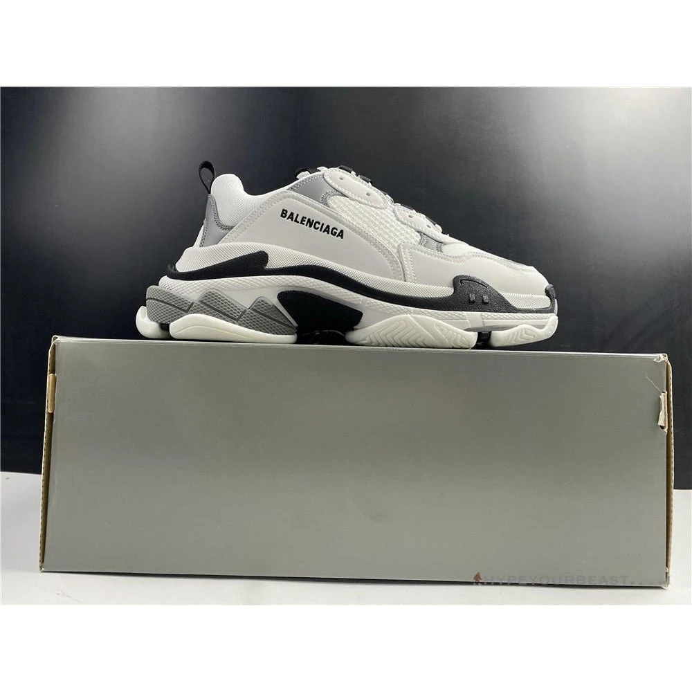 A sleeking and minimalist sneaker is made through the Balenciaga Triple S White / Black. These sneakers’ colorway includes clear white, black, and different shades of grey. The non-leather upper bases showcase white and grey shades. It also includes grey overlays. Other than that, Balenciaga Triple S White / Black owns triple sole features with black, white, and grey layers. The sneakers bring you a simple but elegant style on your feet. Grab a pair of these sneakers and enjoy their excellent quality.