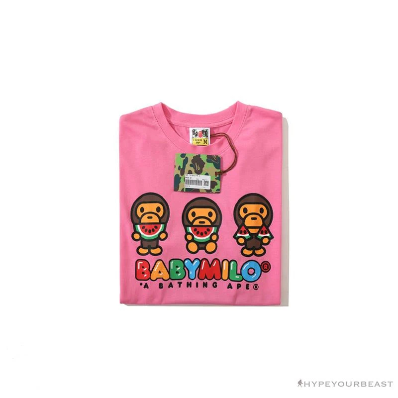 Hypeyourbeast Clothes BAPE Baby Milo Watermelon Little Monkey Tee Shirt ‘PINK’