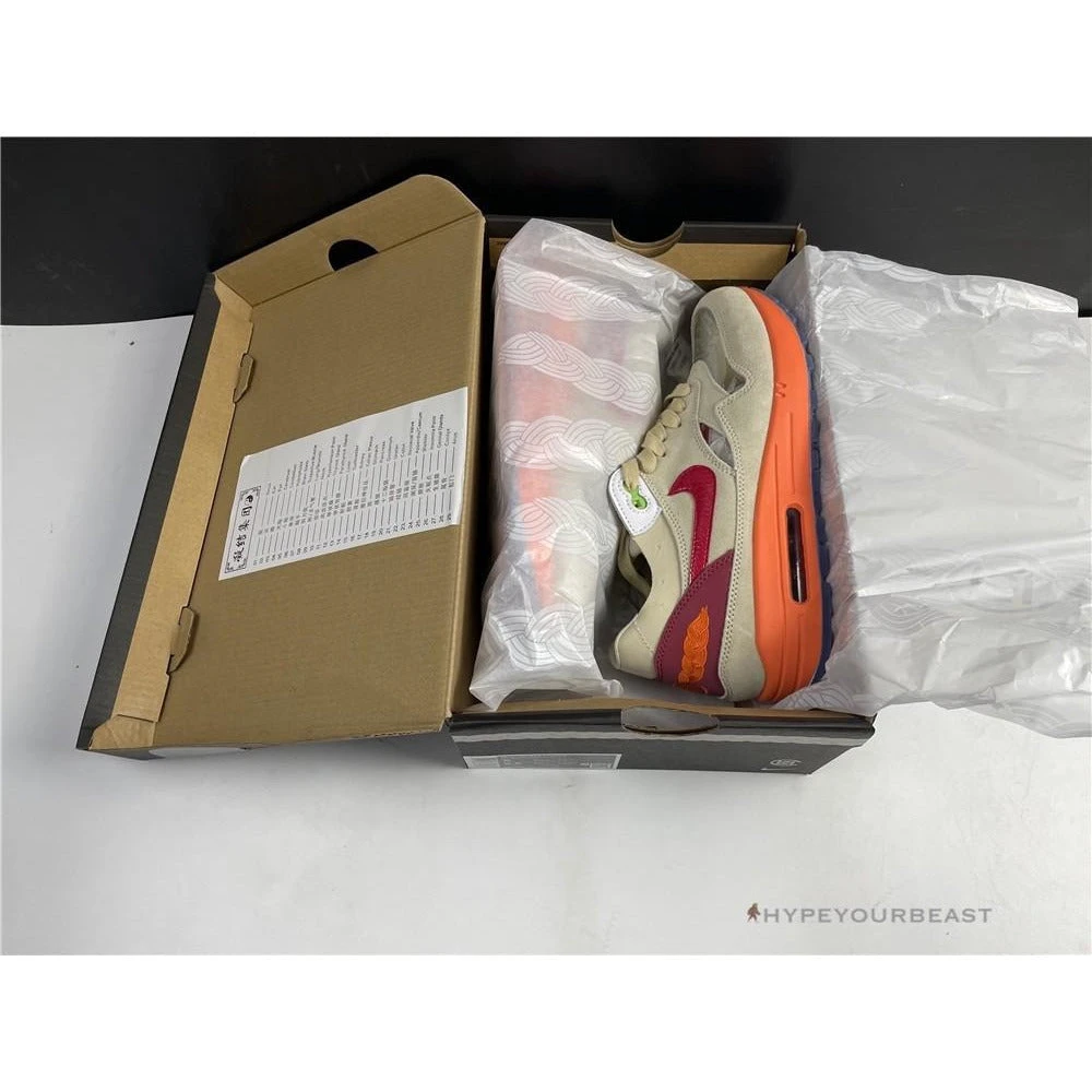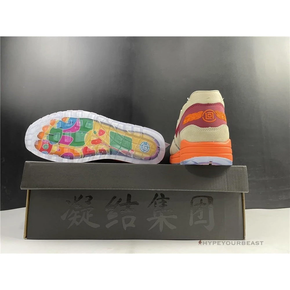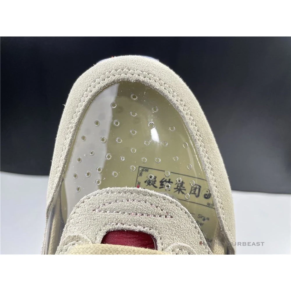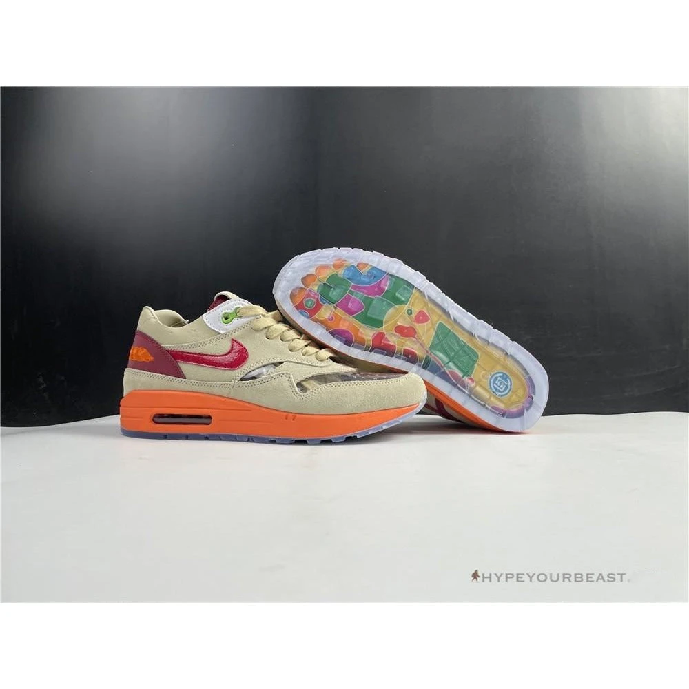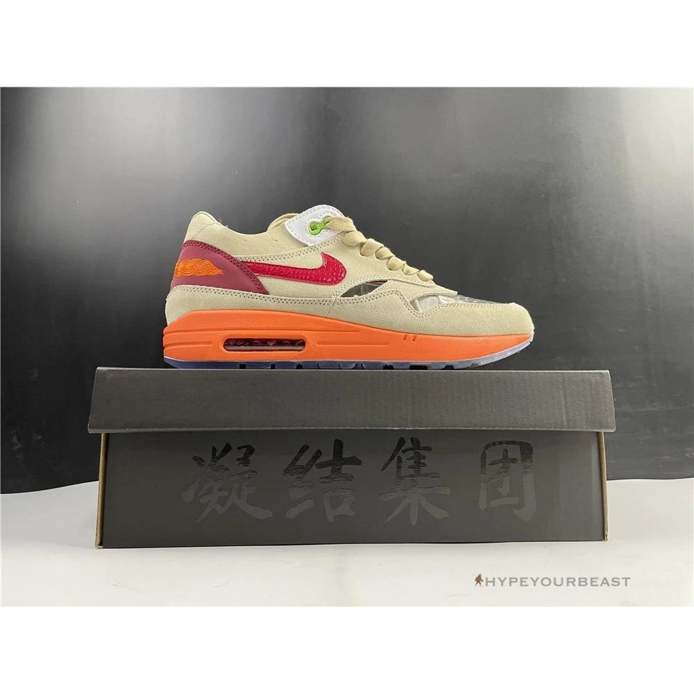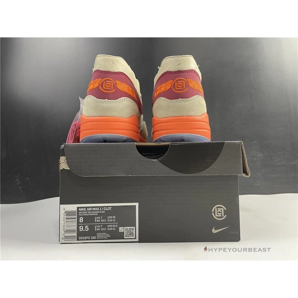 CLOT x Nike Air Max 1 SP ‘Kiss of Death’ is fab sneakers that are loved and supported by many shoe collectors. Nike x CLOT Air Max 1 presents this footwear along with deconstructed tan suede upper bases with a unique translucent paneling finish on the toe box and outsoles. The sneakers also offer red scaly textured Nike Swoosh. Besides that, this footwear also presents red and orange heel accents. CLOT x Nike Air Max 1 SP ‘Kiss of Death’ is completed with visible Air sole technology in its bring orange midsoles.