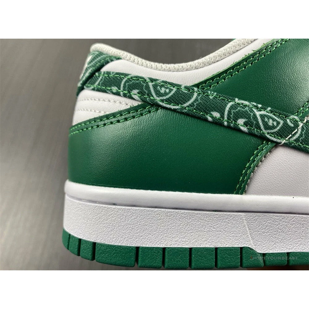 The Nike Dunk Low ‘Green Paisley’ is a special edition of the classic sneaker. It features a green and white base on the upper, with a green paisley print leather Swoosh and white rubber sole. The ‘Green Paisley’ is a nod to the traditional Irish pattern, often seen on clothing and fabrics. The shoe is part of Nike’s St. Patrick’s Day collection, which also includes the Air Max 90 ‘Irish Clover’ and the Air Force 1 ‘Lucky.’ The collection is a celebration of Irish culture, and the ‘Green Paisley’ is a fitting tribute to the country’s rich history.