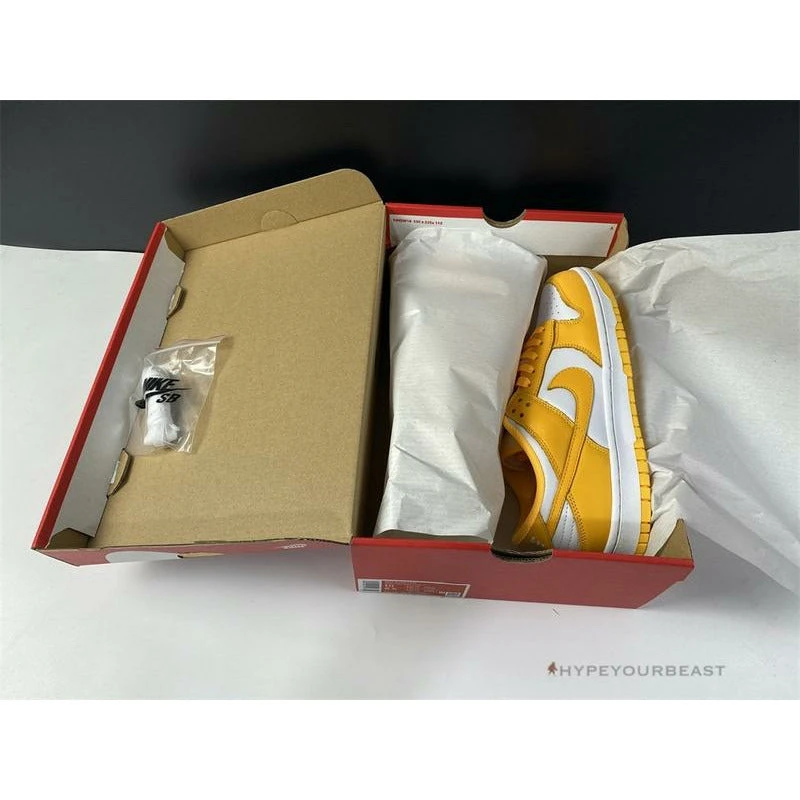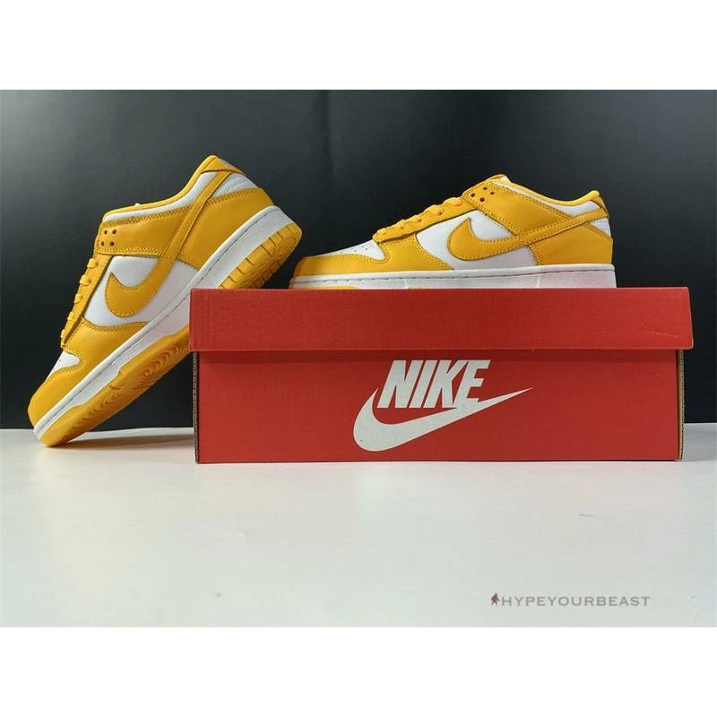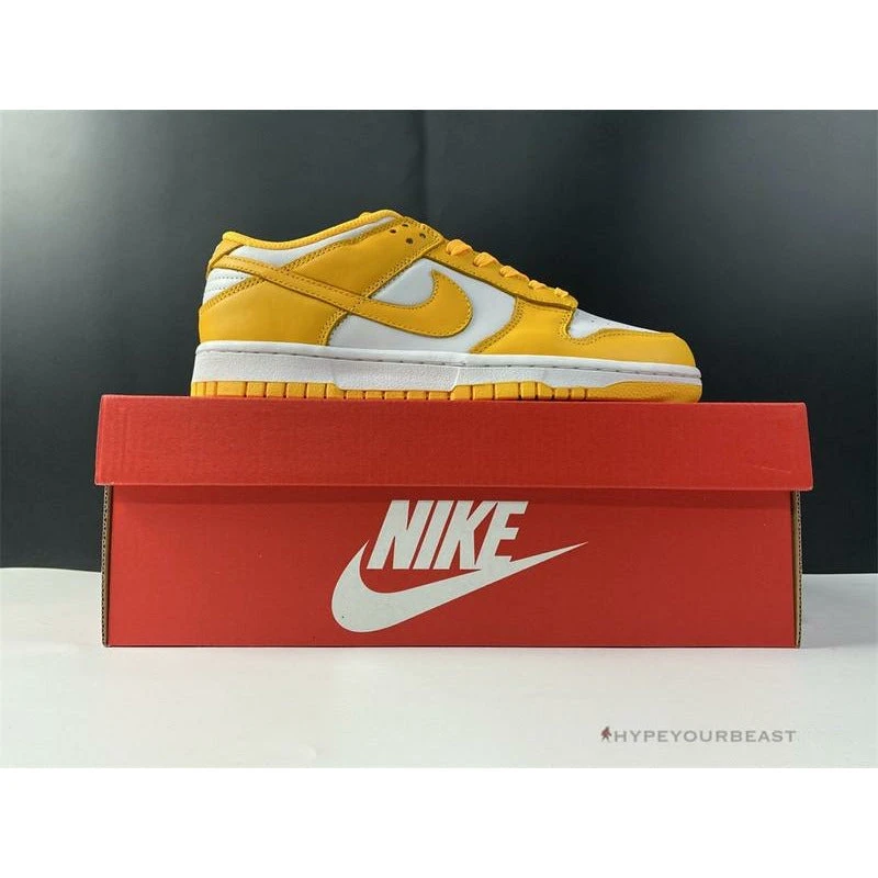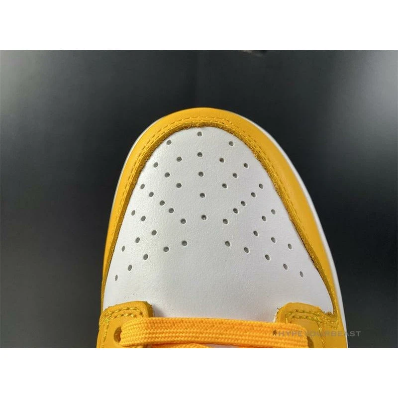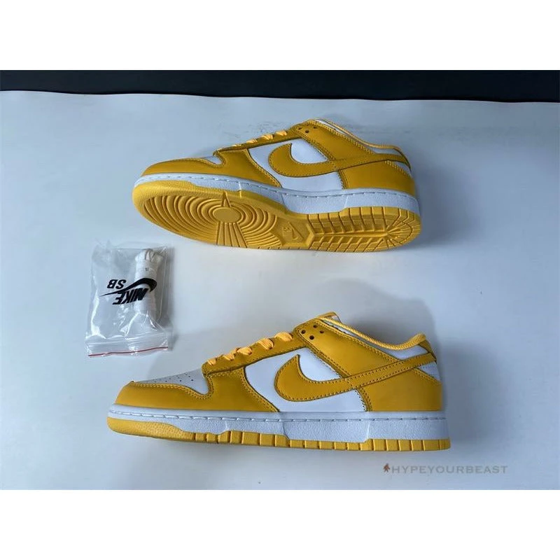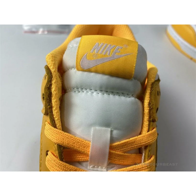 This pair of Nike Dunk Low ‘Pollen’ offers you an understated two-tone white and yellow accent from Michael Jordan‘s first signature silhouette. These kicks draw potential inspiration on the “Pollen” which supplies a healthy dose of classic Air Jordan style. The perforated toe box, collars, and quarters are well-constructed in white tumbled leather, while other features are dressed in yellow leather. The tongue is made of white nylon and other details such as white and yellow midsoles complete the look of the kicks.