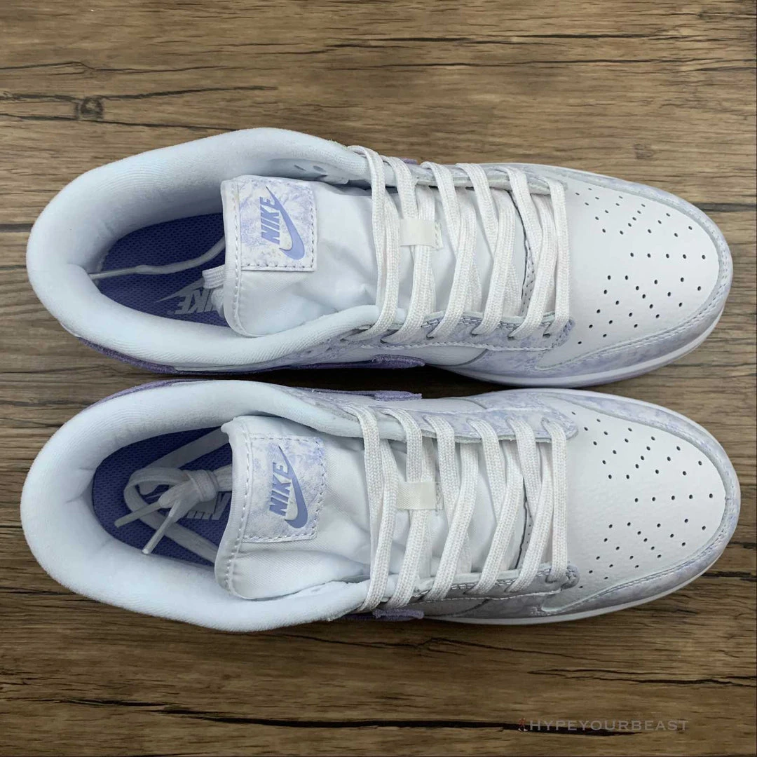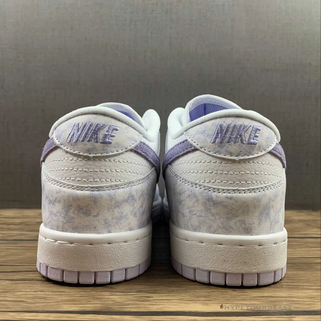 Nike Dunk Low Purple Pulse has a minimalist touch while carrying white and light purple tones. It brings you a smooth and premium quality of suede upper construction in a white hue. Then, these sneakers present an aesthetic touch of purple-dyed effect on the forefoot, side panels, eyelets, heels, tongue, and heel tabs. Moreover, Nike Dunk Low Purple Pulse even carries a darker purple tone on the iconic Nike Swoosh. To complete this footwear, it showcases white midsoles and lights purple rubber outsoles.