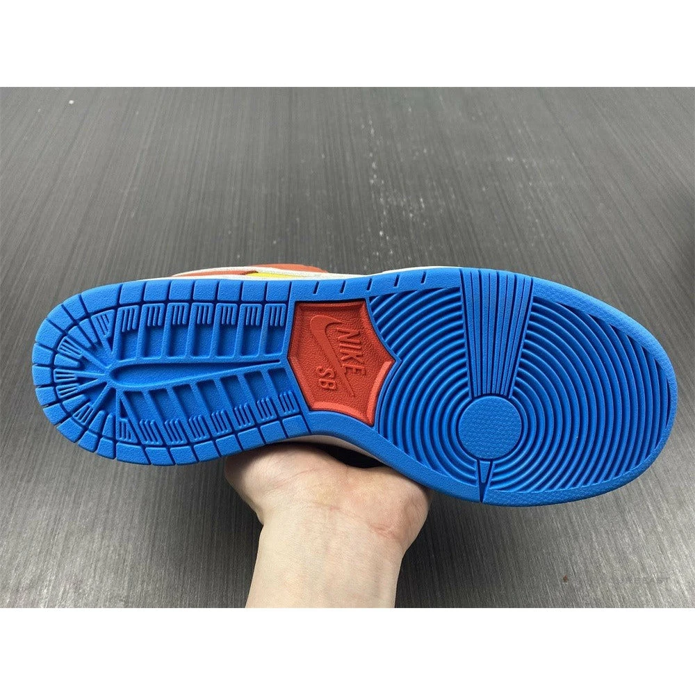 The Nike Dunk Low SB ‘Bart Simpson’ is predominately yellow, with red and white accents. It has red overlays, highlighting the white Nike Swoosh. The midsole is white and completed with blue rubber outsoles, giving the shoe a fun and playful look. The Nike Dunk Low SB ‘Bart Simpson’ quickly became a cult classic among sneakerheads and skateboarders, thanks to its unique style and comfortable fit. Today, the shoe remains highly sought-after and continues to be one of the most popular sneakers in the world.