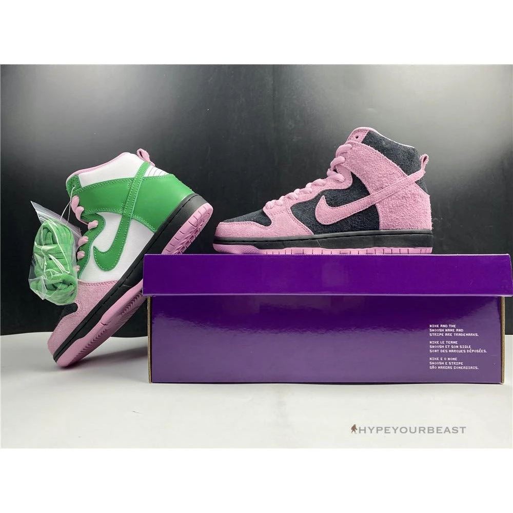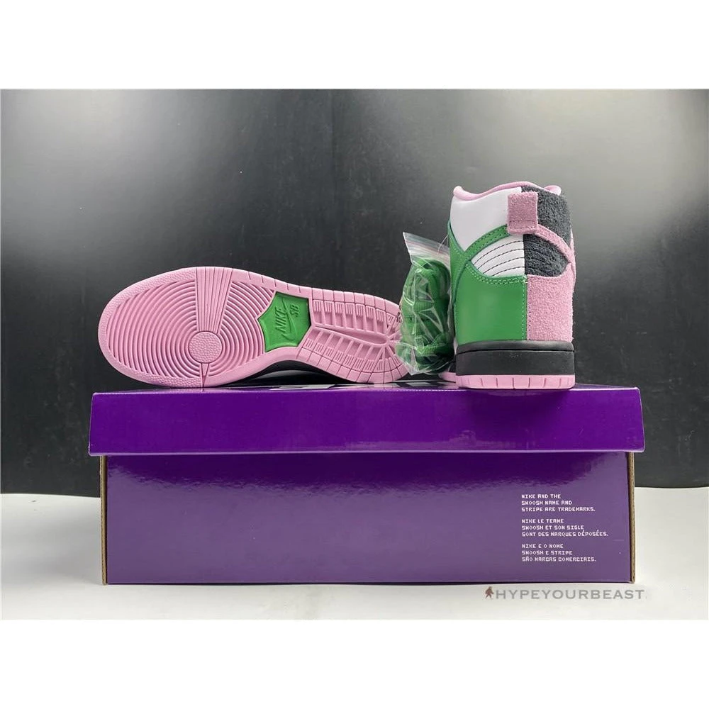Nike Dunk SB High Invert Celtics will provide you with outstanding two-tone style in front of your peers. Complete your OOTD with these elegant kicks, channeling alluring Black and pink colors and unique green style. Grab a pair of Nike Dunk SB High Invert Celtics and savor its premium fitting on your feet.