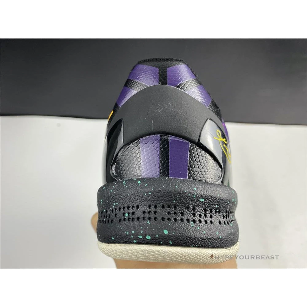 Nike Kobe 8 Easter sneakers convey terrific style and colorway. This pair contains psychedelic colorways which include teel, yellow, purple, and black. Nike Kobe 8 Easter is made from a mesh upper with different colors of teal on the toe cap, yellow on the mid panel, and purple on the ankle collars. There is also black cage-like material on the heel with a gold Kobe Bryant’s signature. Nike Kobe 8 Easter makes the sneakers even interesting through its flashy effects on the midsole and light blue rubber outsoles. These sneakers gave you a chance to be the next center of attraction.
