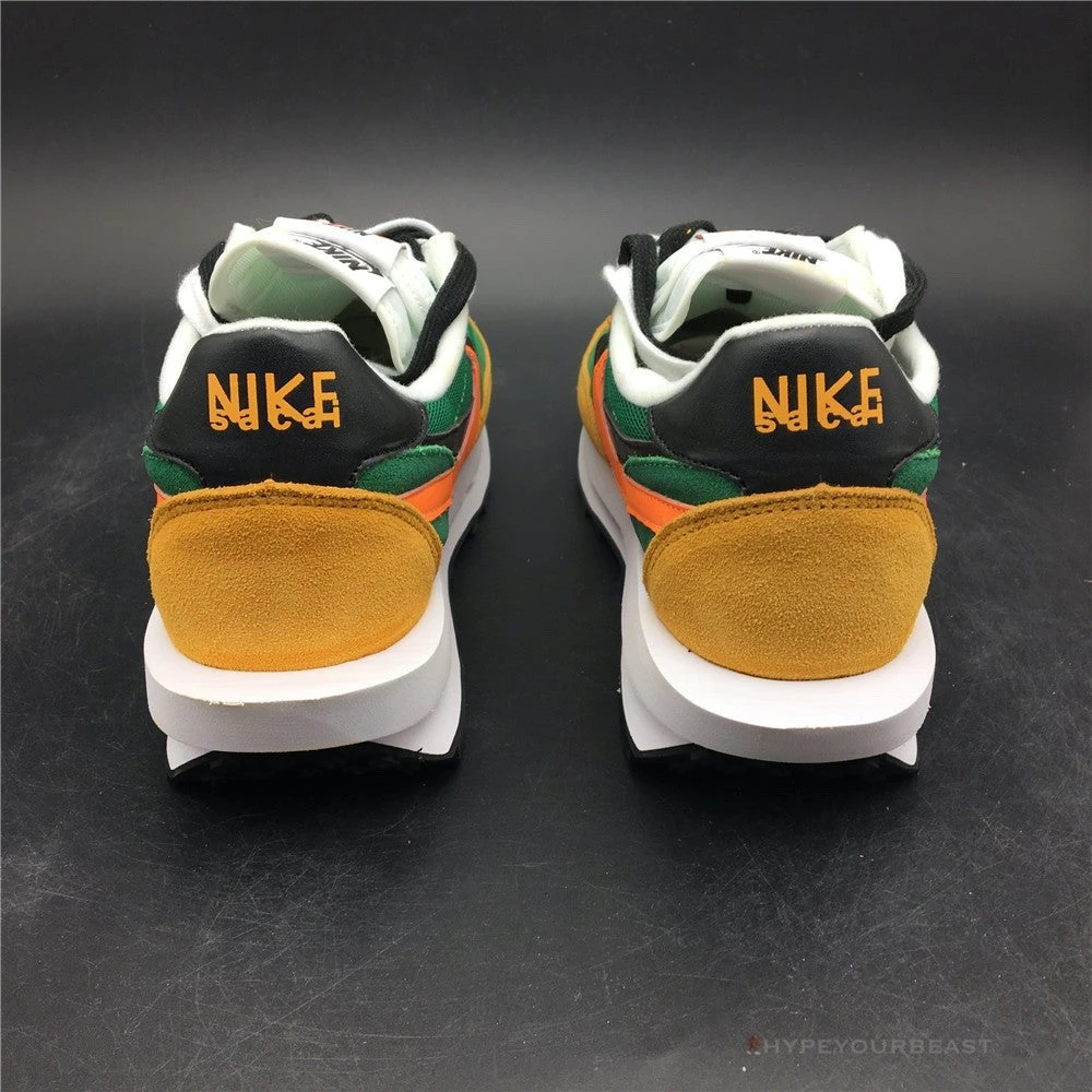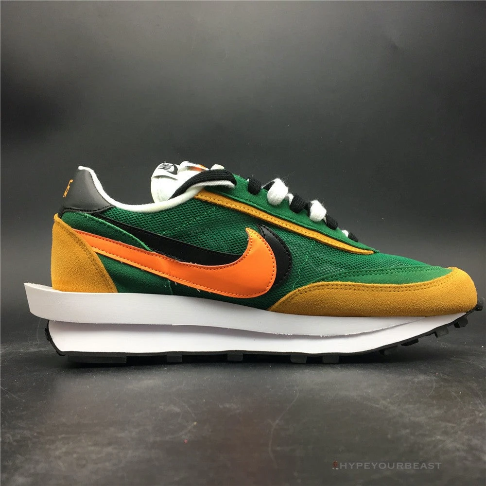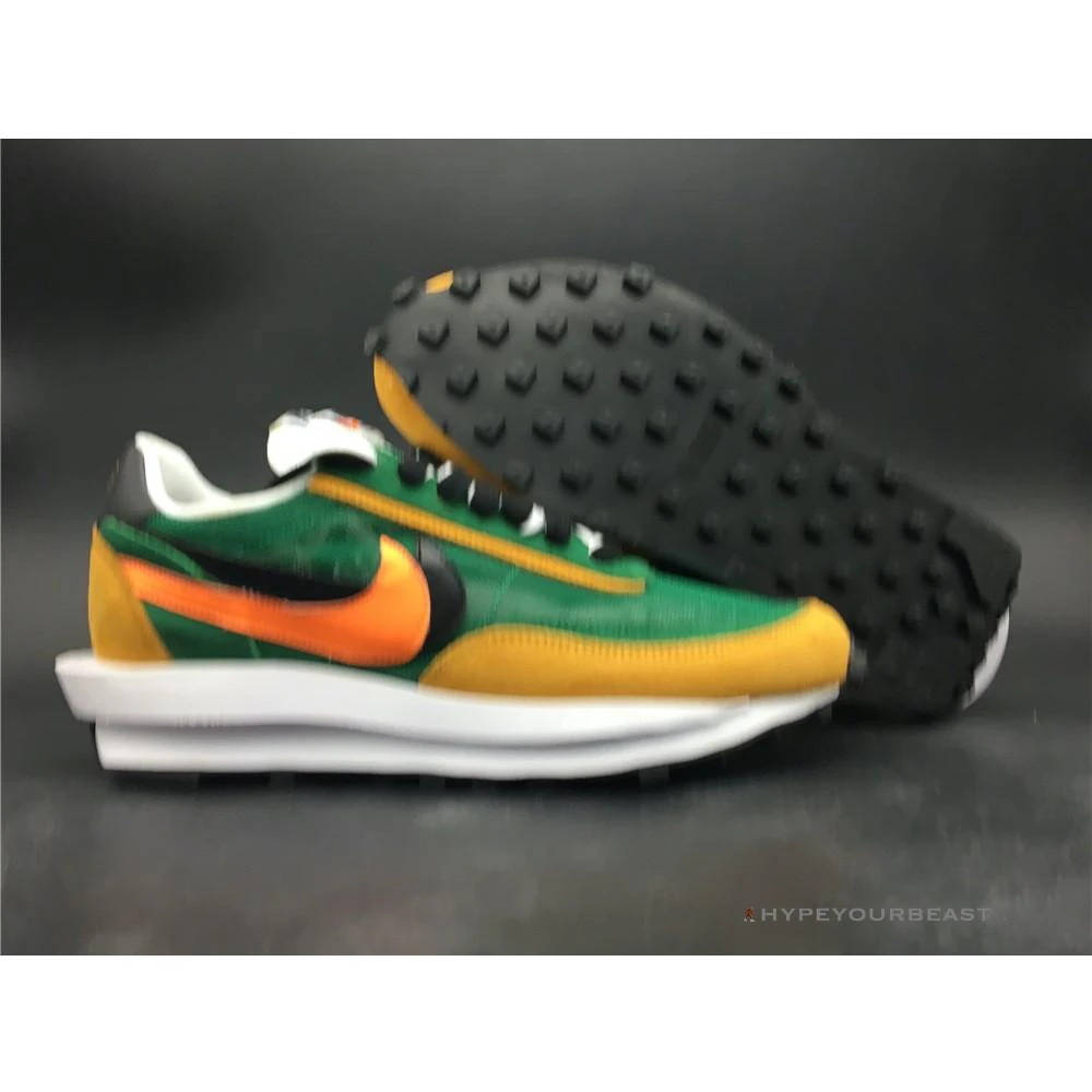 Green, yellow, and orange are the main colors of Nike LD Waffle Sacai Green Gusto. These sneakers cater to wonderful color combinations as it was built from suede, mesh, and leather construction. Its upper has a green base with yellow accents, the same colors for the eyelets with white laces. However, Nike LD Waffle Sacai Green Gusto highlights the black and orange double Nike Swooshes on the sides. Its impeccable midsoles are also in white extended molds complementing the black rubber gum outsoles. This pair of sneakers gives you another shot of appeal and extra style on your feet.