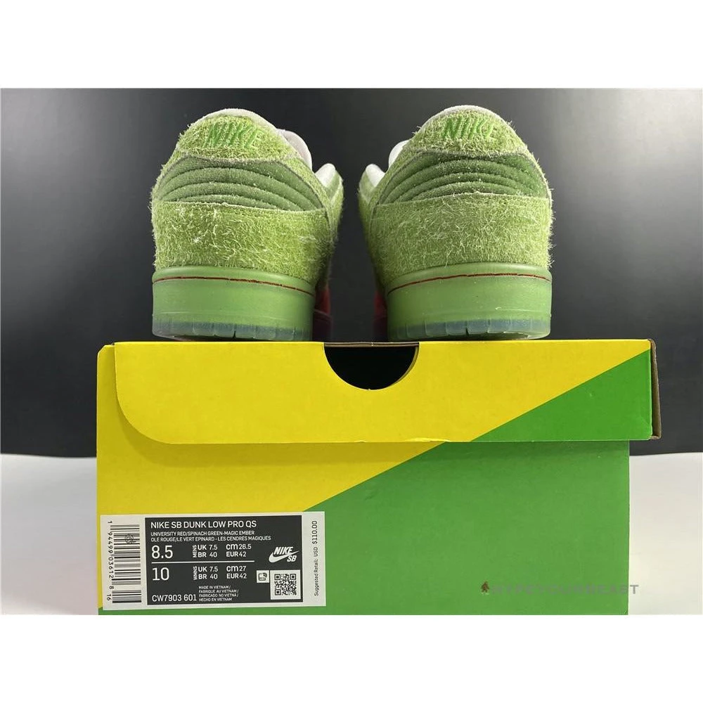 The iconic symbolism of Strawberry Cough as the fragrant marijuana strain is also available in its low-top version. Nike SB Dunk Low Strawberry Cough also showcases similar features with the high-top sneakers. It includes the premium red leather forefoot and mid panel with hairy green suede construction of the heel and ankle collars. Even the soles are killing its style as it owns semi-transparent rubber cupsoles. Nike SB Dunk Low Strawberry Cough is completed with the famous green Nike Swoosh on the side panel together with the classic Strawberry Cough cartoon.