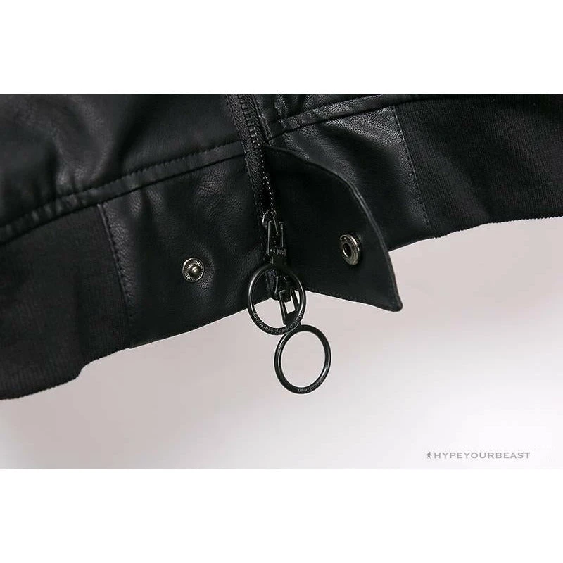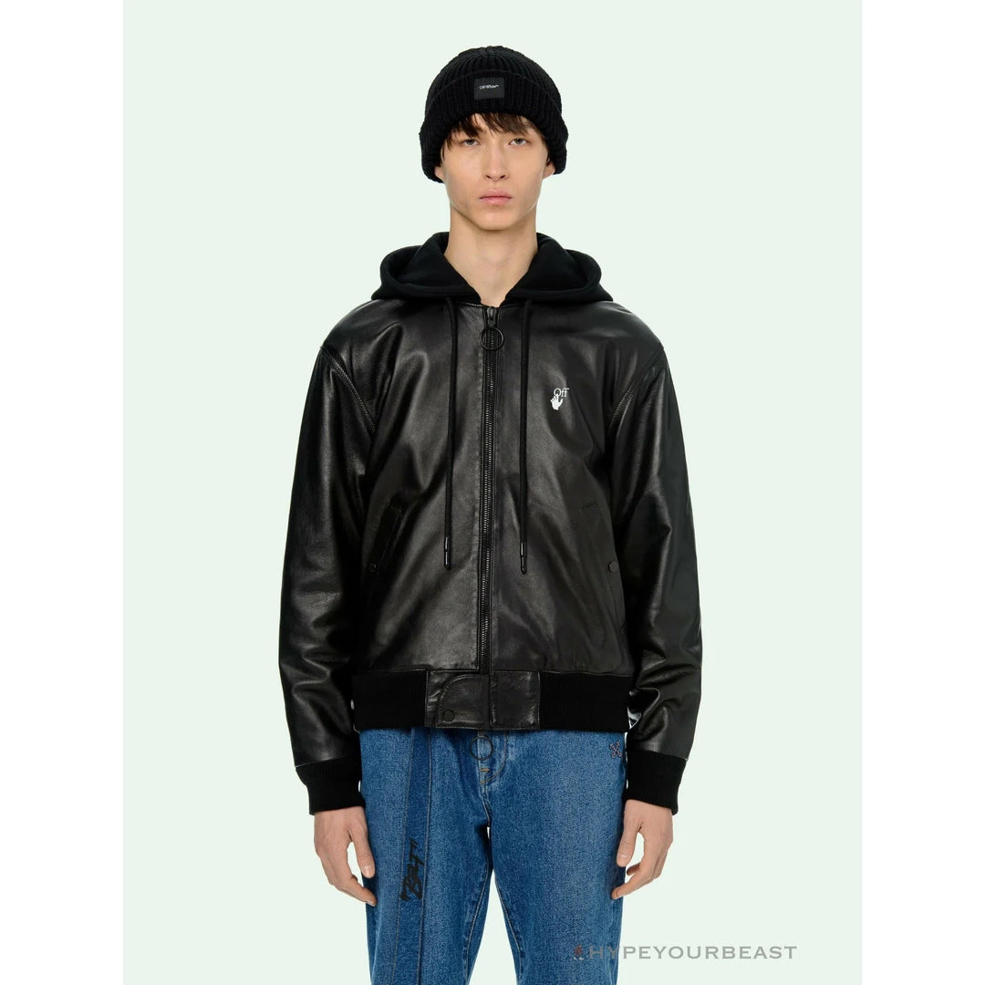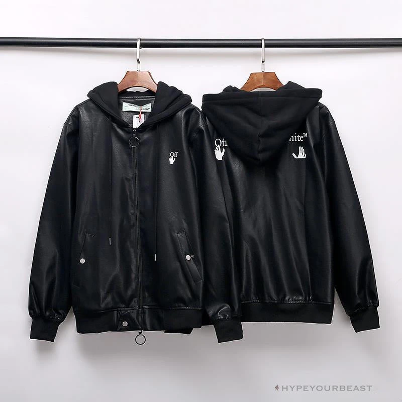 Hypeyourbeast OFF-WHITE 20FW New Logo Hooded Leather Jacket Black Hoodies & Jackets