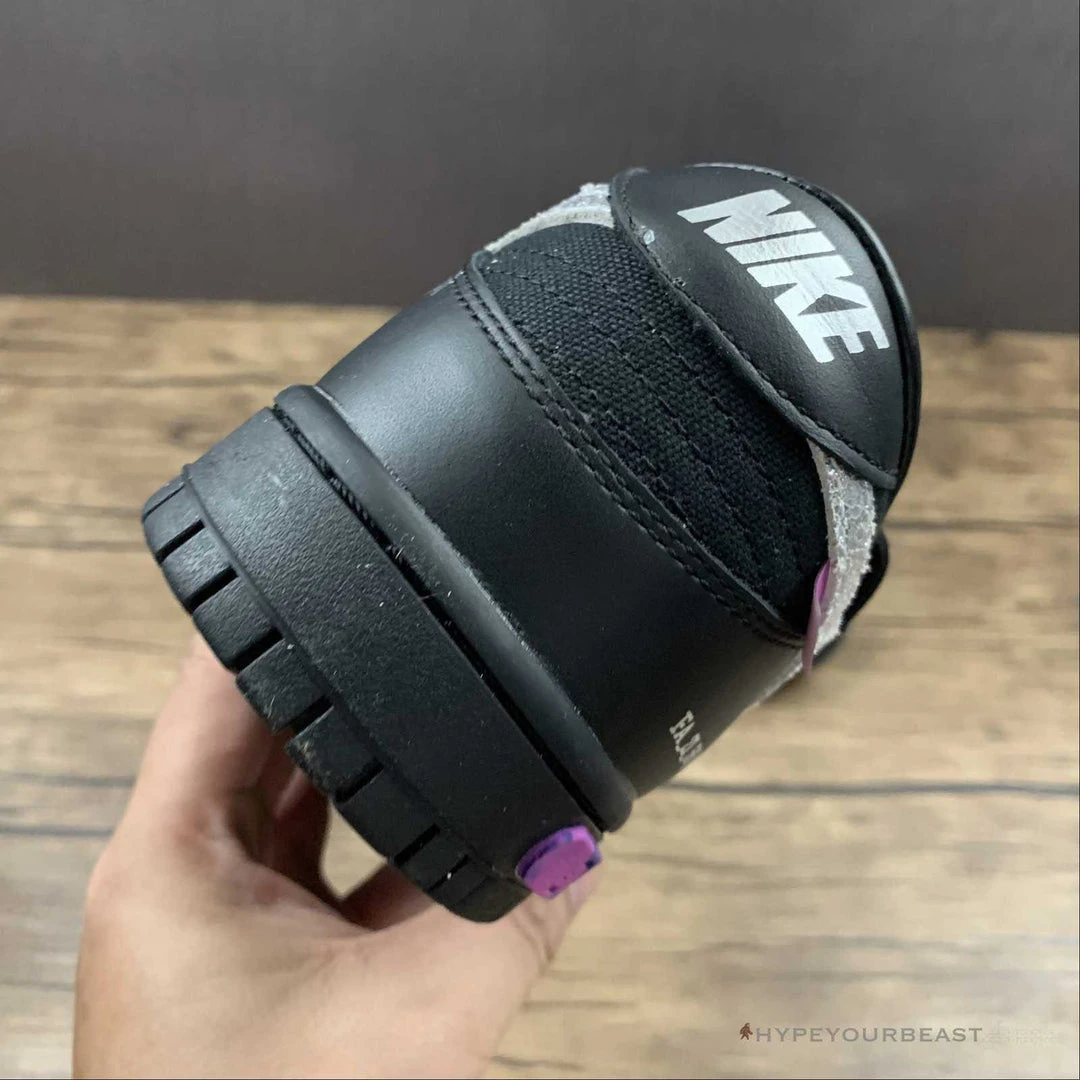 The all-black theme is the main feature of Off White X Nike Dunk Low ‘Dear Summer – 50/50’. These sneakers are part of the Dear Summer Collection. However, unlike other pieces, the 50/50 presents a black theme. It carries a black upper with black overlays. Even its tongue, outlining, and the extra lacing system is in black tones! Yet, these kicks also bring an awesome metallic silver Nike Swoosh, white laces, and purple labels, making it more appealing. This footwear ensures you have awesome kicks with any clothes on your wardrobe.