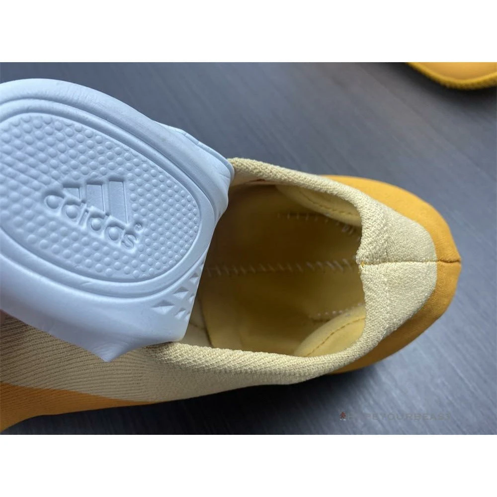 The Adidas Yeezy Knit Runner ‘Sulfur’ is composed of Foam Runner and is made from foam produced from algae, the knitted runner Yeezy is made from well-knitted material. The fully knitted construction, rendered in a neutral beige color with a contrasting mustard yellow finish in most of the upper part, uses a non-slip construction devoid of exterior marking. Embellishments are limited to sizing information stamped on the lateral collar. The sneaker runs on a durable rubber outsole in an assorted yellow finish, with a modified herringbone tread and Adidas brand underneath the heel.